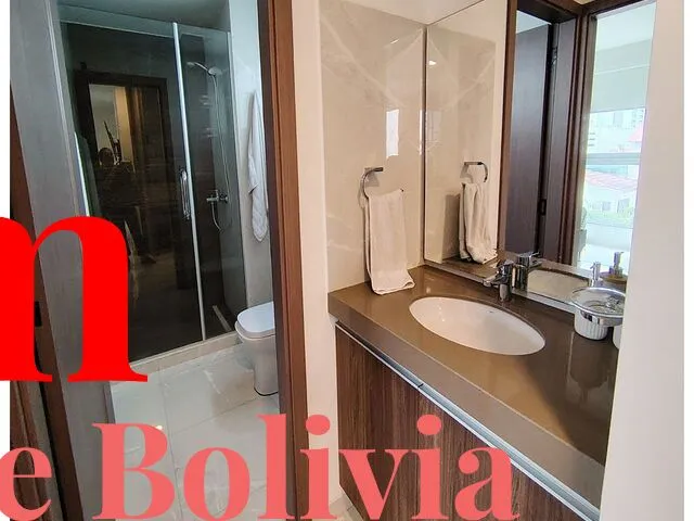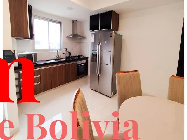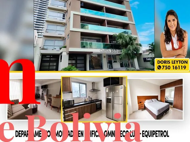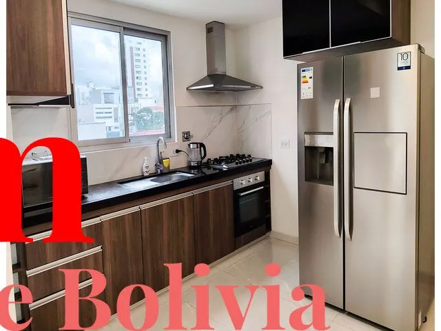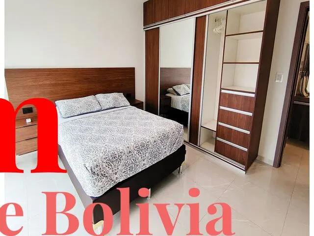 ????Barrio Equipetrol, a pasos de Los Tajibos y a una cuadra de la Av. San Martín, C. Flamboyanes, Barrio Sirari Características ✅ Departamento de lujo de 73 m2, amoblado ✅ Precio $us 800 tc bs 7 incluye expensas e internet Descripción: Dos dormitorios Living comedor con balcón Cocina americana Área de lavandería Equipados con: - Cocina encimera - Horno - Extractora - Muebles de cocina altos y bajos - Línea Blanca (aires acondicionados, lavandería, lavadora/secadora, refrigerador, microondas) - Calefón a gas - Roperos completos con divisiones interiores y vestidores completos - Baños con muebles, box y espejos - Porcelanato importado - Construcción antisísmica grado 5 en la escala de Richter ...