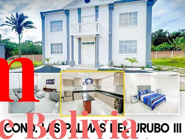 ???? CASA EN VENTA O ALQUILER – ESTILO AMERICANO ???? Urbanización Palmas del Urubó III – Urbanización Cerrada ✨ Características principales: ????️ 3 dormitorios en suite (2 en planta alta + 1 en planta baja) ????️ Sala con techo de doble altura ???? Cocina totalmente amoblada ❄️ Aire acondicionado en todos los ambientes ???? Garaje para 3 vehículos ???? Patio amplio ???? Terreno: 407 m² ???? Construcción: 180 m² ???? Entorno y ubicación: ???? A pasos de Playa Turquesa ????‍????‍???? Comunidad consolidada (+15 familias) ???? Áreas sociales exclusivas: 3 ????‍♀️ piscinas (semiolímpica, recreativa y niños) 4 ???? parques infantiles 2 ???? canc...