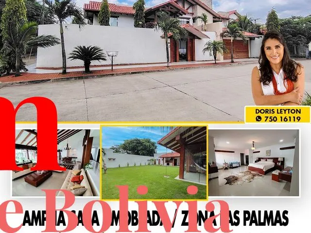 A pasos del 4to anillo, te presentamos esta linda casa de dos plantas, con un amplio jardín, y todos los ambientes finamente decorados; rodeada de colegios, universidades, restaurantes, bancos, Country Club Las Palmas, Empresas Petroleras y otros.
