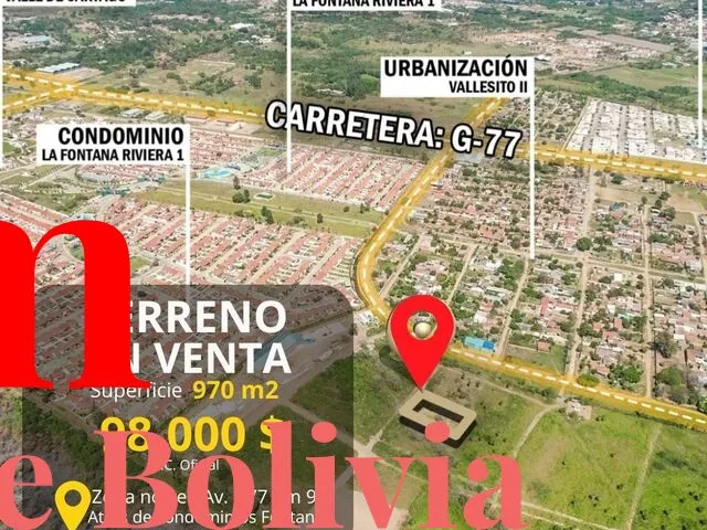 ‼️Terreno con gran potencial en Venta‼️ ????Atención Desarrolladoras, Constructoras, Inversores. ????Zona: Norte Av. G77 km9 atrás de Condominios Fontana Riviera ????Superficie: 970 mt2 ????Documentación en Orden. ????Precio de Venta: 97.000$ Tc Oficial ???? ???? ???? ???? ???? ???? ???? ???? ???? ???? ???? ✨????????‍???? Cel???? +59175016119 Asesor inmobiliario CAPITAL Corporación Inmobiliaria Oficina Av. Alemana No. 2045 entre 2do y 3er Anillo #capitalcorporacioninmobiliaria #terrenos #propiedades #bienesraicesenbolivia #inmuebles #ventas #zonanorte #santacruz #bolivia #inversiones